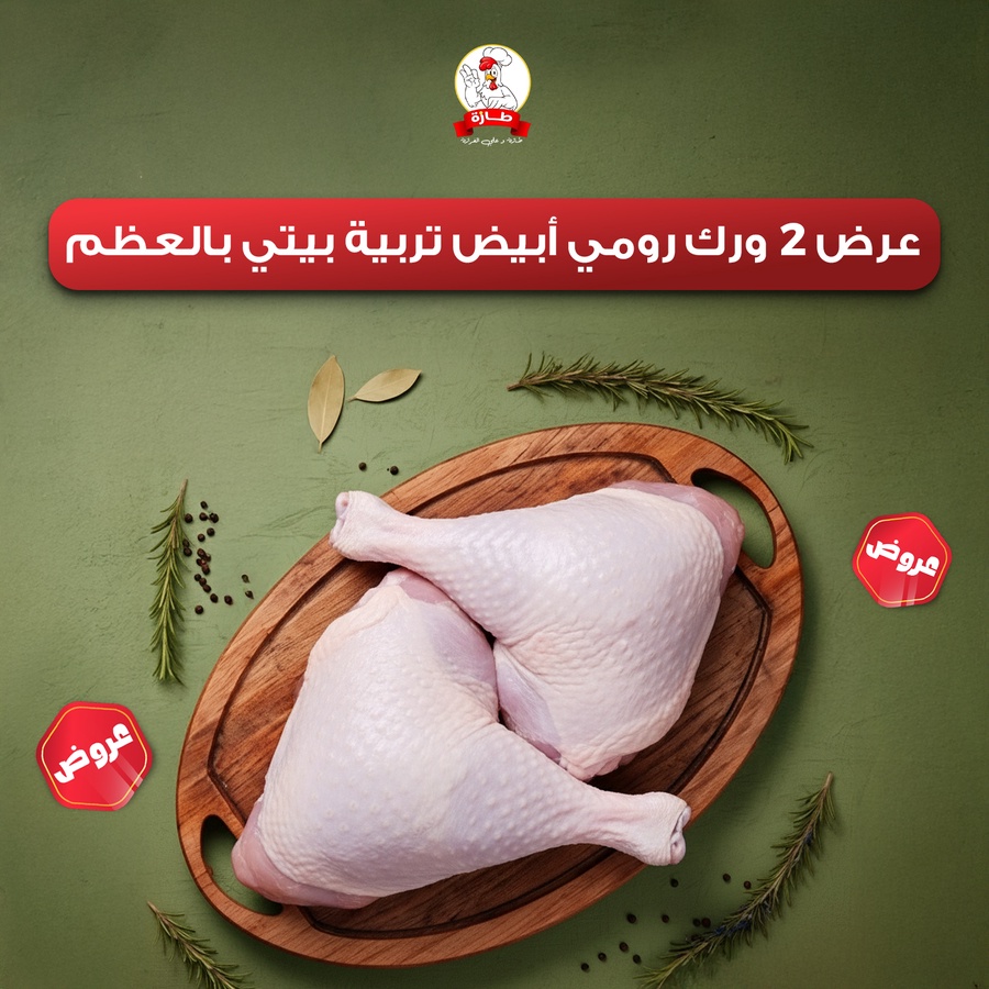 • عرض 2 ورك رومي أبيض تربية بيتي بالعظم، سعر الكيلو 150ج بدلًا من 165ج
