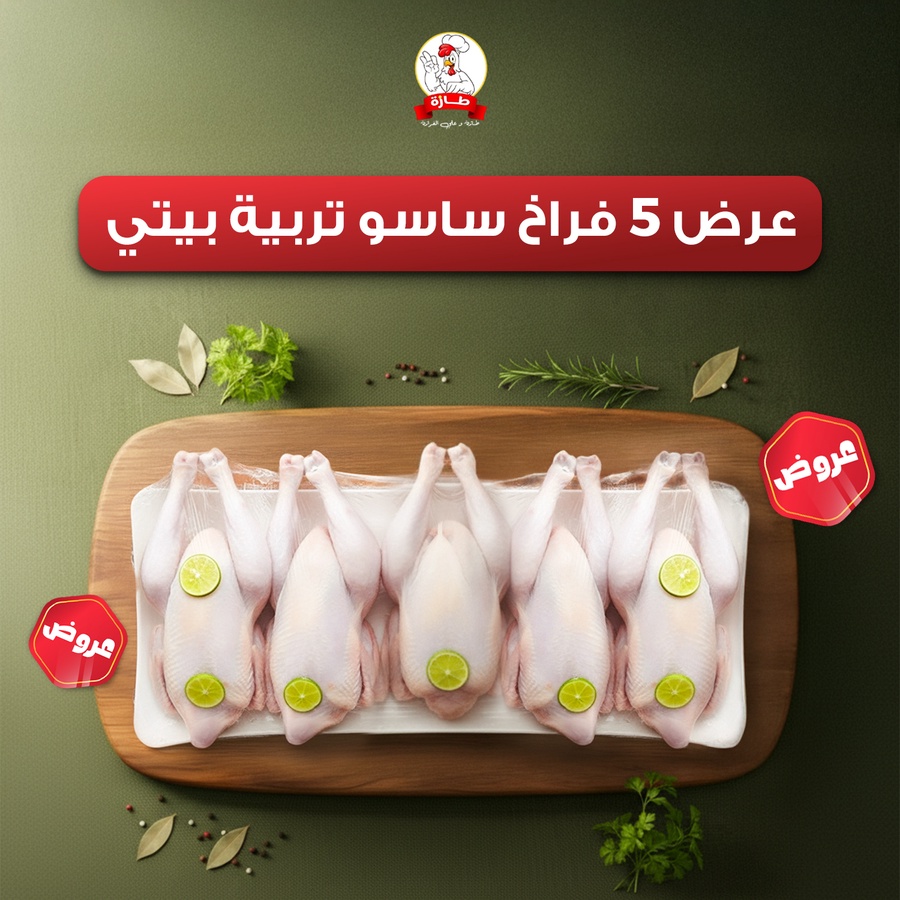 • عرض 5 فراخ ساسو تربية بيتي، سعر الكيلو صافي 190ج بدلًا من 195ج